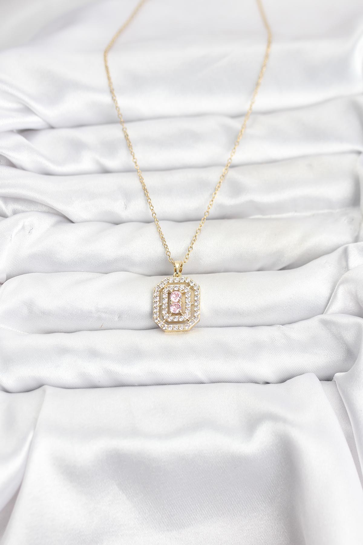 316L Çelik Zincir Gold Renk Plaka Model Zirkon Taşlı Kadın Kolye - TJ-BKO10858